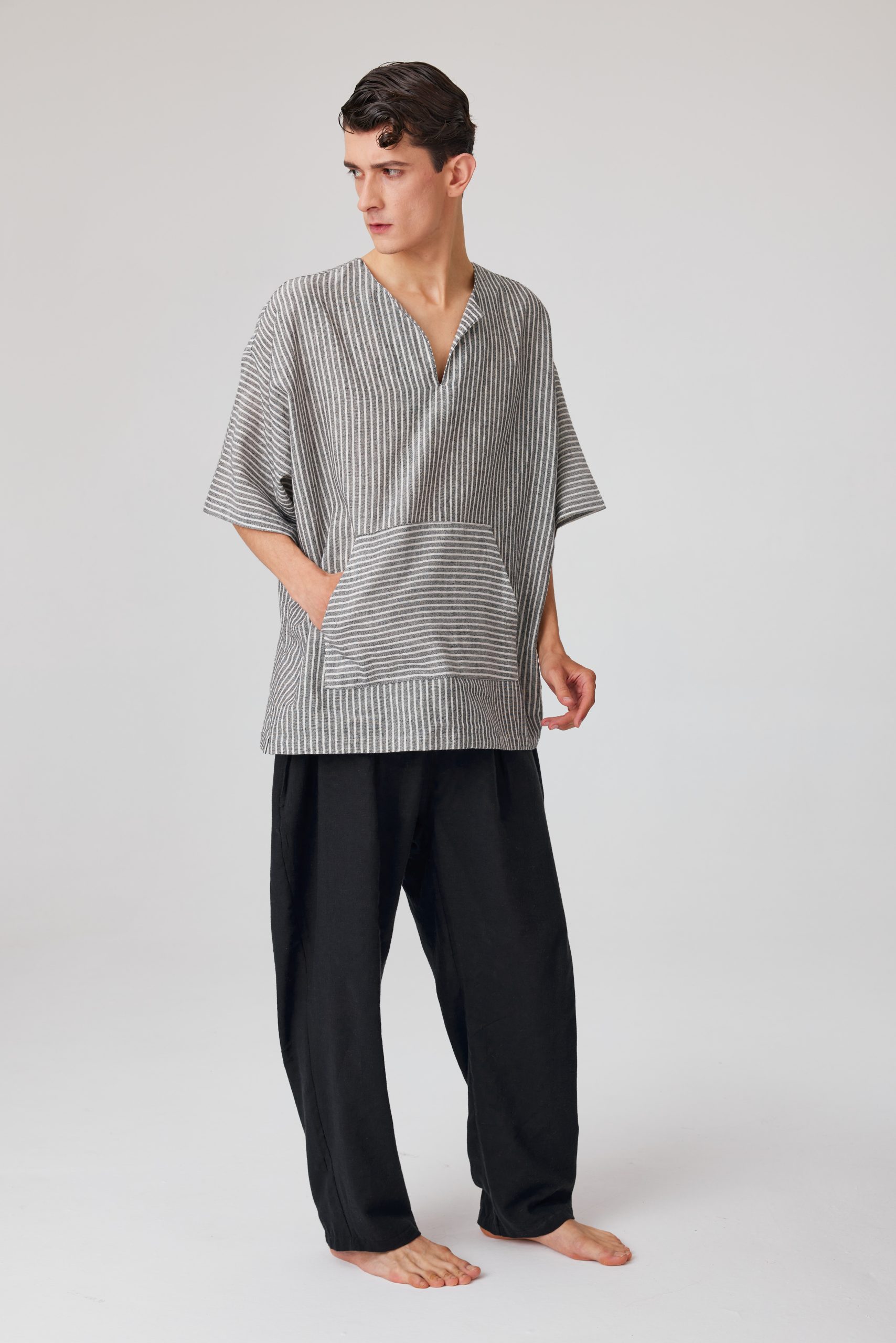 Düğmeli Keten Kimono Erkek